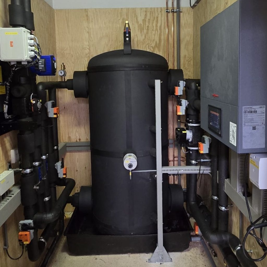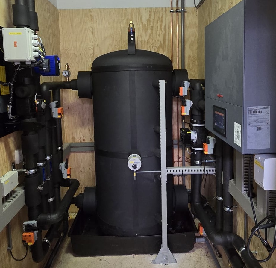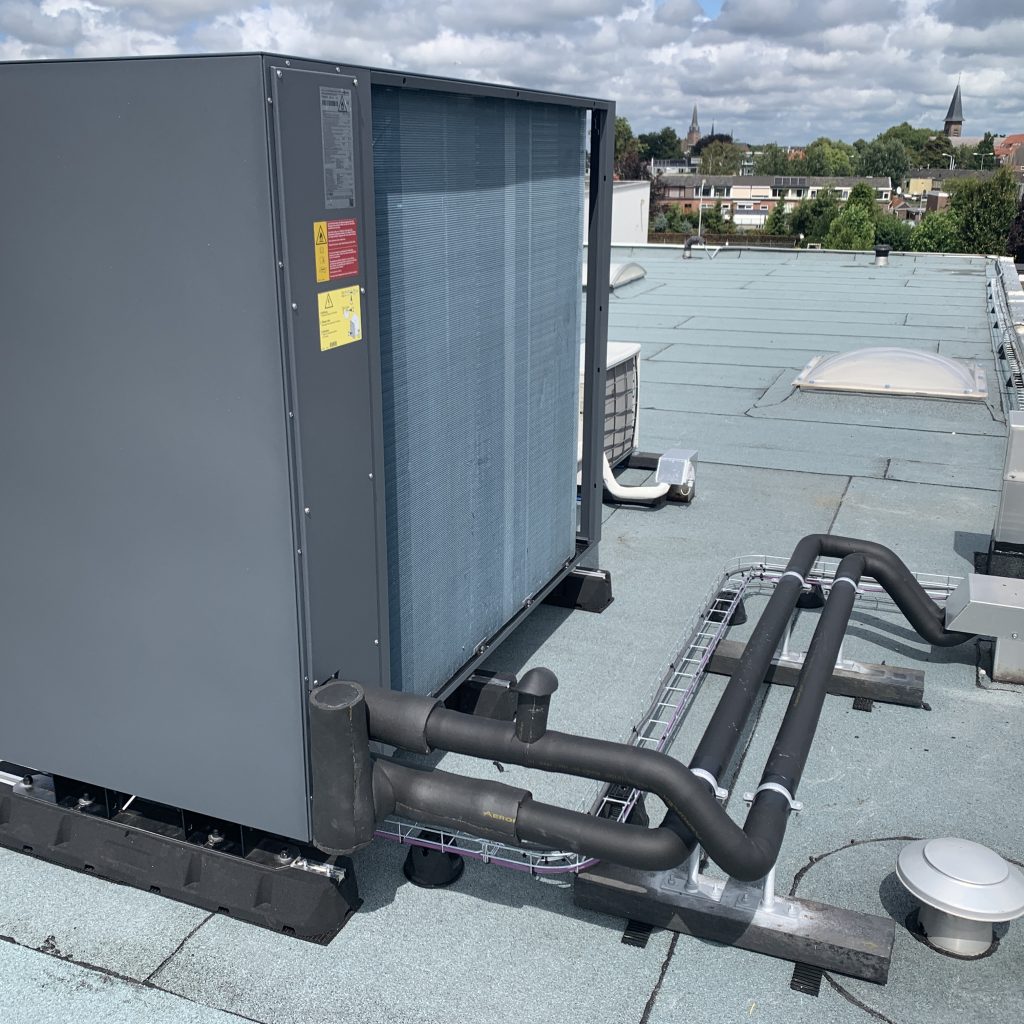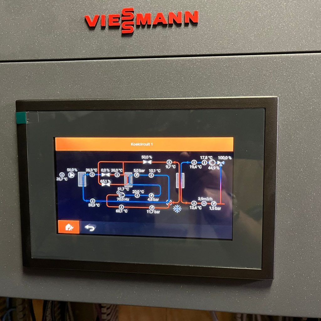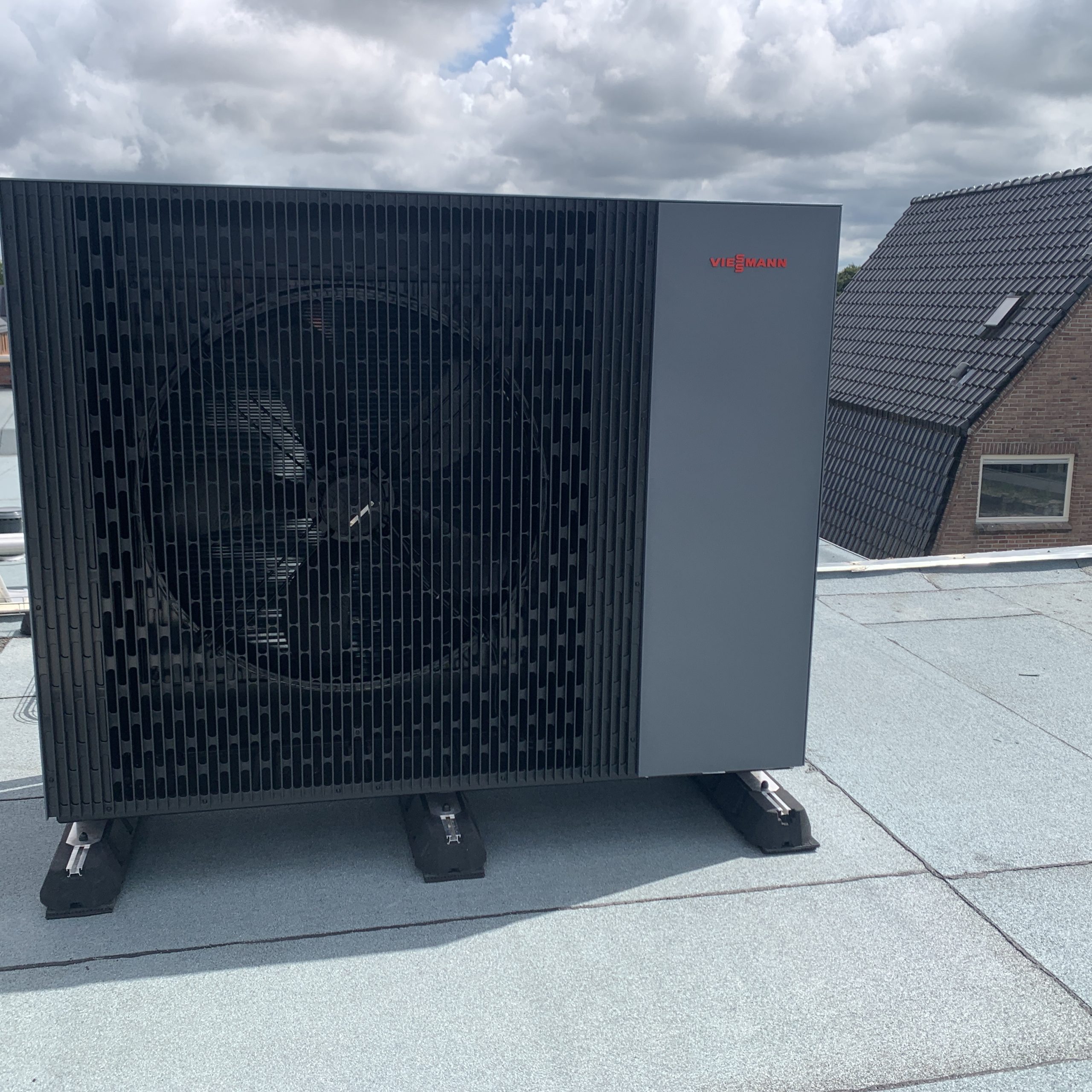 Voor de warmtepomp wordt gebruik gemaakt van de nieuwste Viessmann Vitocal 250-A PRO A40. Deze warmtepomp werkt op propaan en heeft een nominaal vermogen van 39.5 kW. Deze warmtepomp zal de warmte / koude maken voor het kantoor.